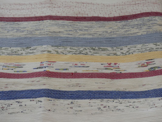 - Montage en polyester pour la catalogne en tons de blanc, bleu et jaune;